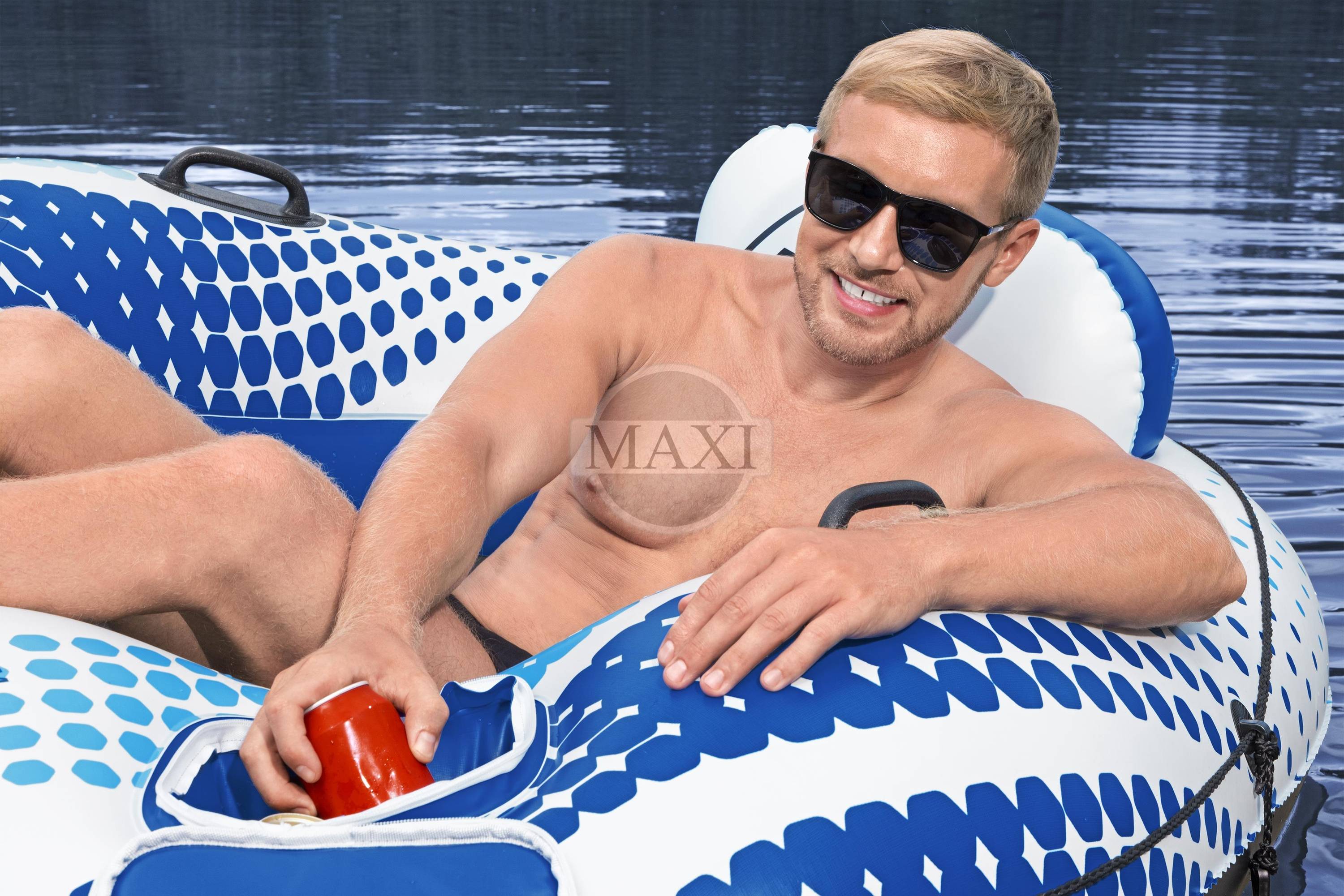 W zestawie znajduje się specjalne miejsce na napój, mocne uchwyty do trzymania, oraz przelotki i trwały sznurek dla dodatkowego bezpieczeństwa. Dzięki możliwości łączenia 2 kół za pomocą zapięć na bokach, dmuchane koło zapewni jeszcze więcej zabawy i swobody ruchu na wodzie.
