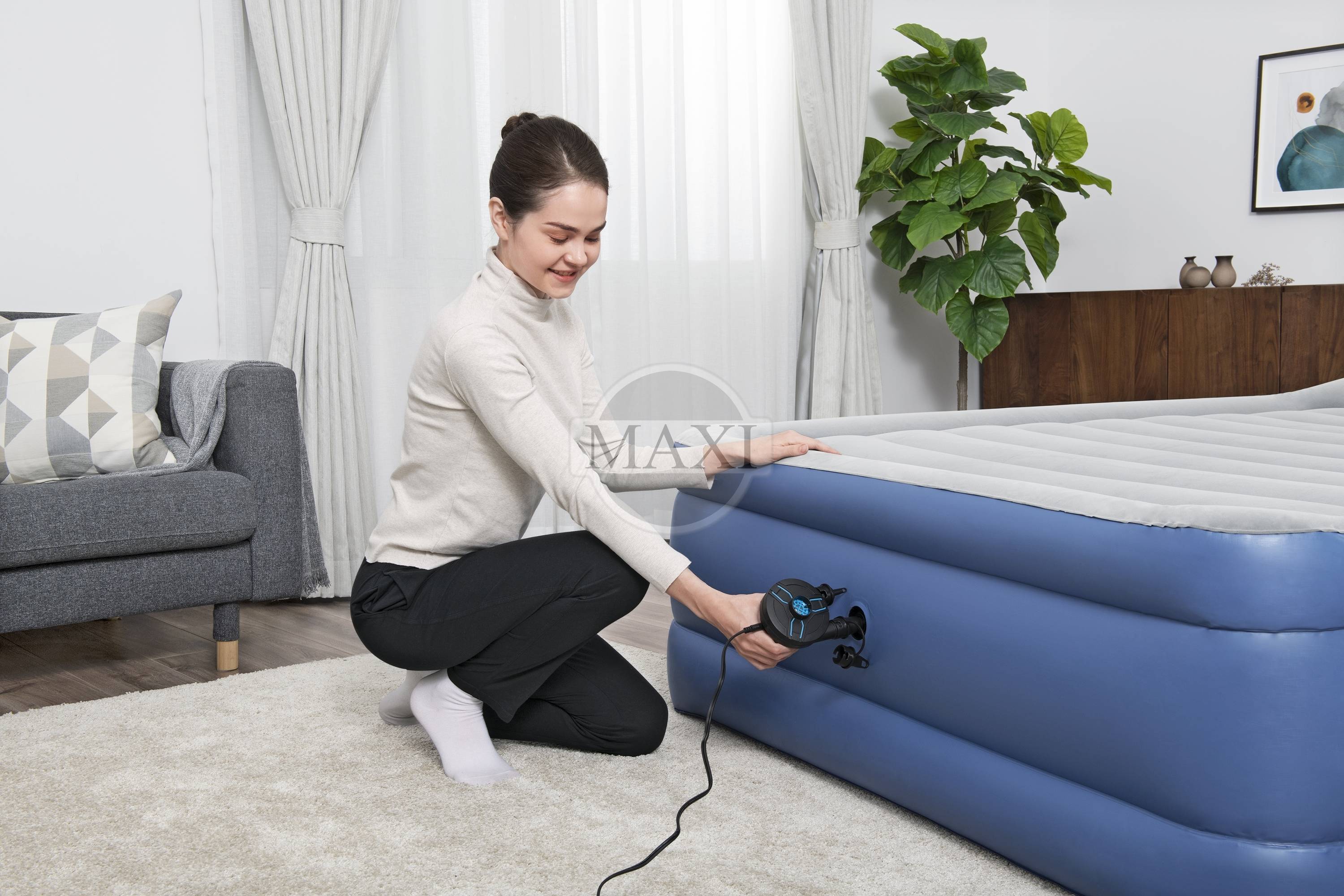 Dzięki niej z łatwością napompujesz wybrany dmuchany produkt. Trzy końcówki zapewnią możliwość pracy z każdym typem dmuchanego produktu. Dzięki przemyślanej konstrukcji obniżono poziom hałasu do minimum. Pompkę zasilamy sieciowo, z gniazdka.